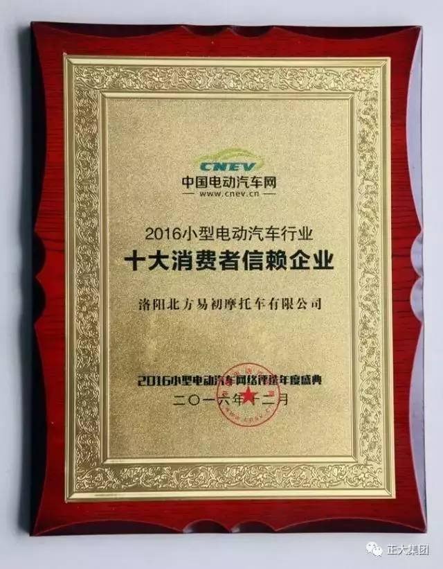 ▲洛陽北易榮獲2016小型電動(dòng)汽車行業(yè)“十大消費(fèi)者信賴企業(yè)”