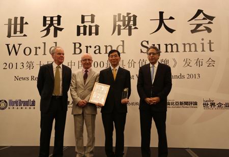 6月26日,由世界品牌實(shí)驗(yàn)室、世界經(jīng)理人雜志等機(jī)構(gòu)主辦的世界品牌大會(huì)暨2013年第十屆《中國500***具價(jià)值品牌》發(fā)布會(huì)在北京東方君悅大酒店召開。會(huì)議發(fā)布了2013第十屆《中國500***具價(jià)值品牌》排行榜,正大集團(tuán)以208.86億元的品牌價(jià)值位居第88位。美國耶魯大學(xué)管理學(xué)院萊維·多爾教授(右一)、法國歐洲工商管理學(xué)院瓊·克勞德·拉里齊教授(左二)以及英國牛津大學(xué)商學(xué)院斯蒂芬·沃格教授(左一)為正大集團(tuán)頒獎(jiǎng)。董事長辦公室(北京)楊海浩總裁(右二)代表集團(tuán)接受獎(jiǎng)杯及證書。