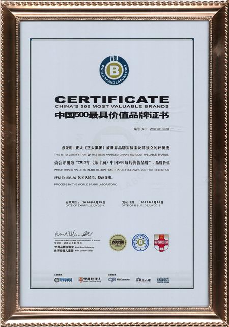 正大集團(tuán)榮膺“中國500***具價(jià)值品牌”