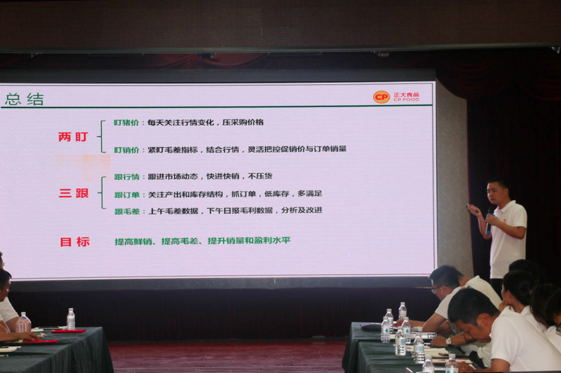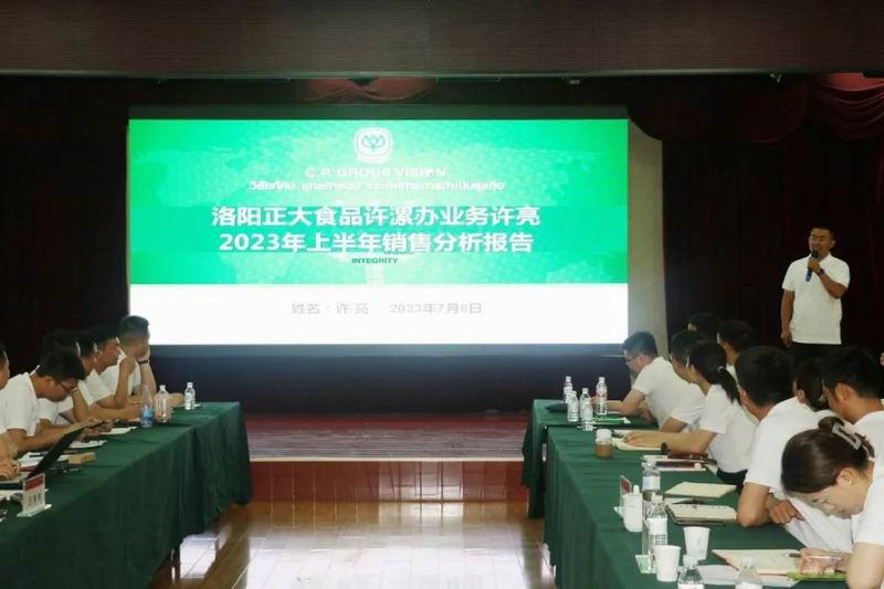 2023年7月8日,洛陽正大上半年工作總結(jié)會議在五樓會議室隆重召開,正大集團河南區(qū)豬肉食品事業(yè)副總裁、洛陽正大食品有限公司總經(jīng)理沈道華、生產(chǎn)與行政外圍主管及全體銷售人員參加會議。